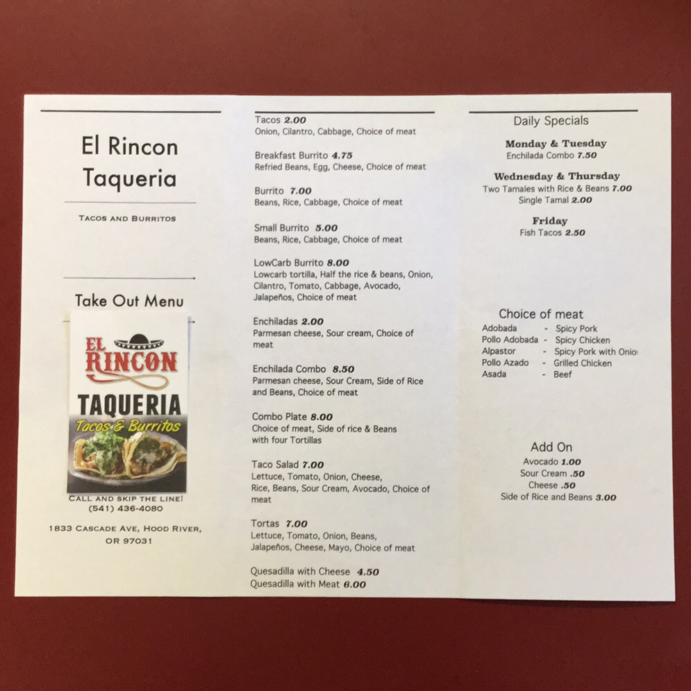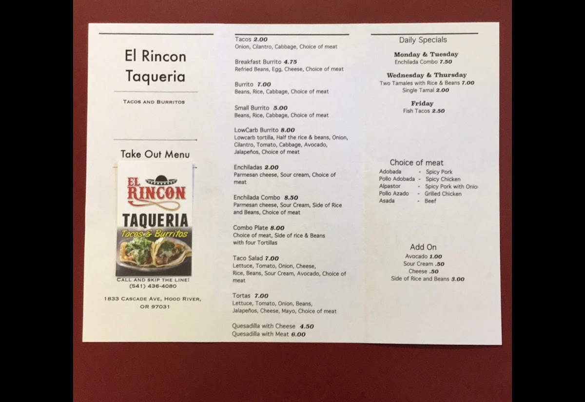Welcome to El Rincon Taqueria, located in the picturesque Hood River, Oregon. This delightful taqueria offers a tantalizing array of authentic Mexican dishes that are sure to please any palate. Their menu features beloved staples such as tacos, burritos, and enchiladas, with prices designed to be friendly to your wallet.